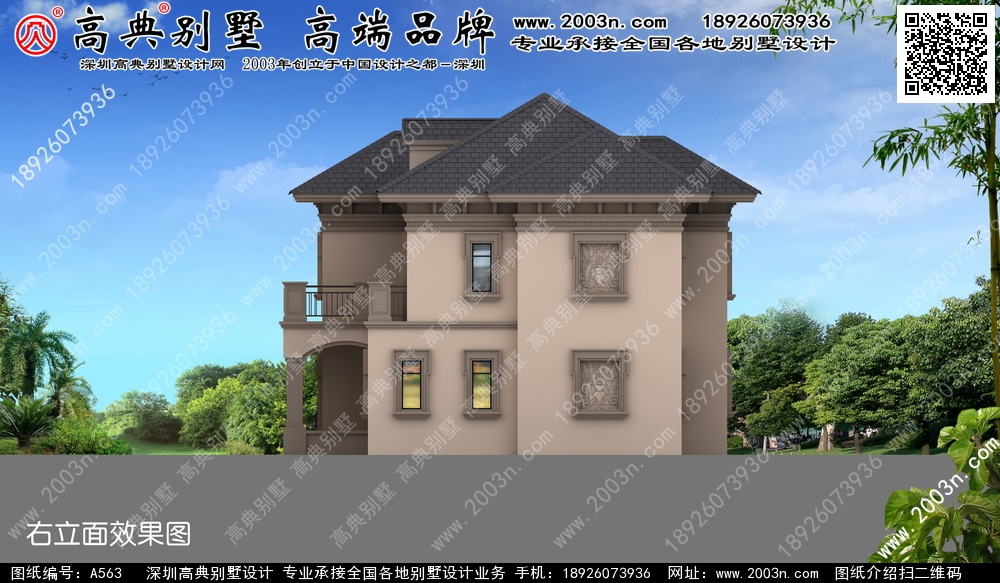 A563号别墅设计图纸及效果图介绍: