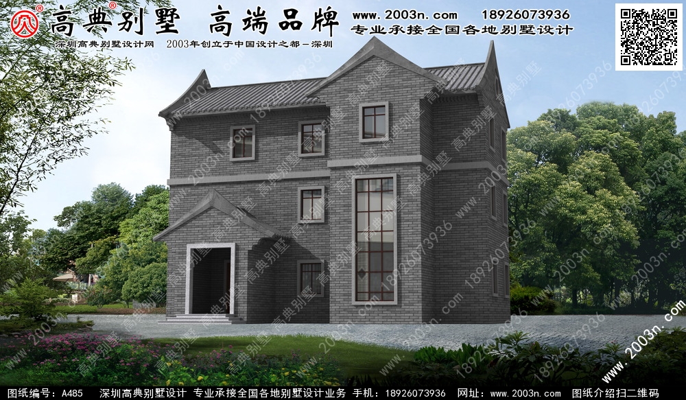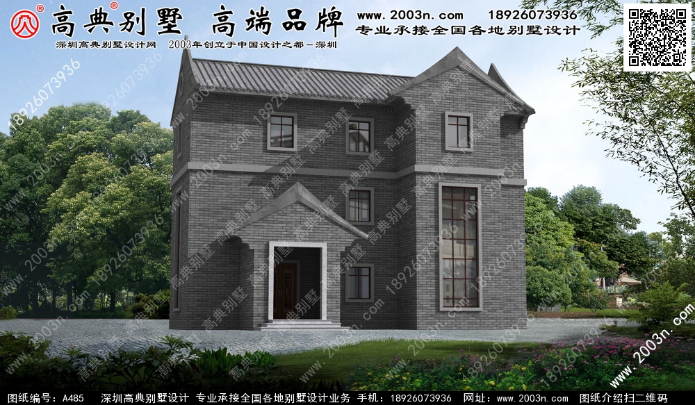 外墙真石漆、外墙仿古小青灰砖、屋顶灰色仿古青灰瓦 |