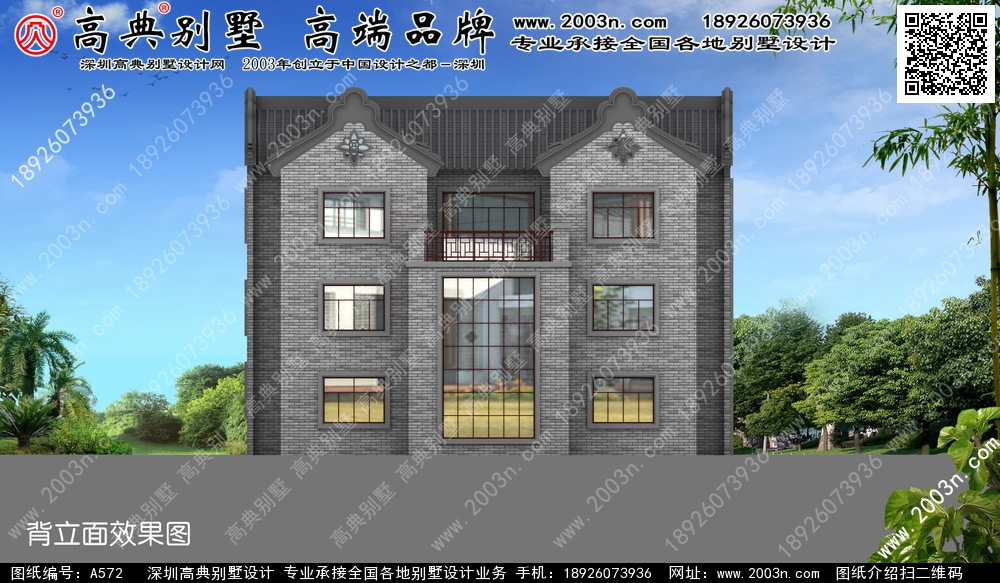 A572号别墅外墙主要材料:仿古青瓦、青灰砖、真石漆 |