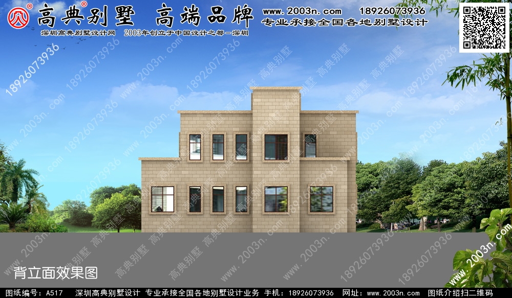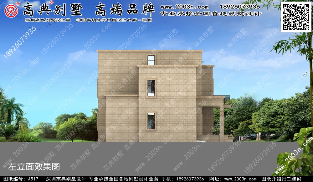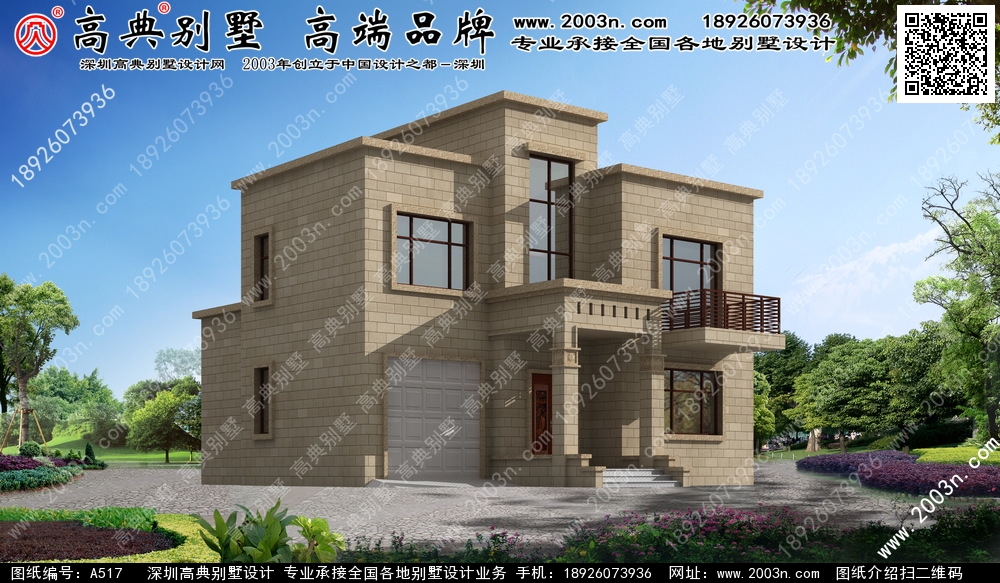 A517号别墅外墙主要材料:天然岩石漆、外墙砖、玻璃栏杆 |