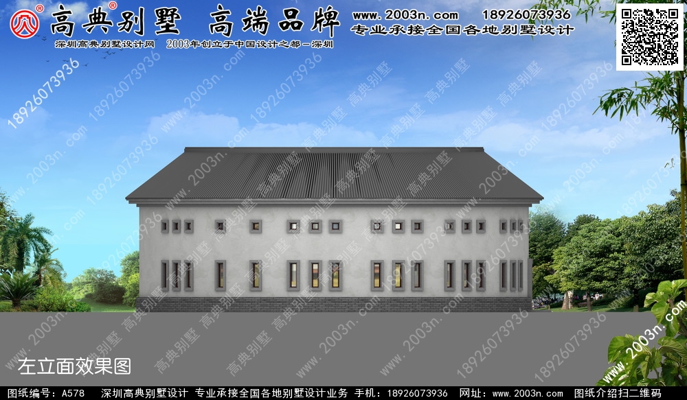 A578号别墅外墙主要材料:外墙真石漆、仿古小青砖、灰色仿石青瓦 |