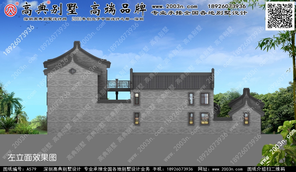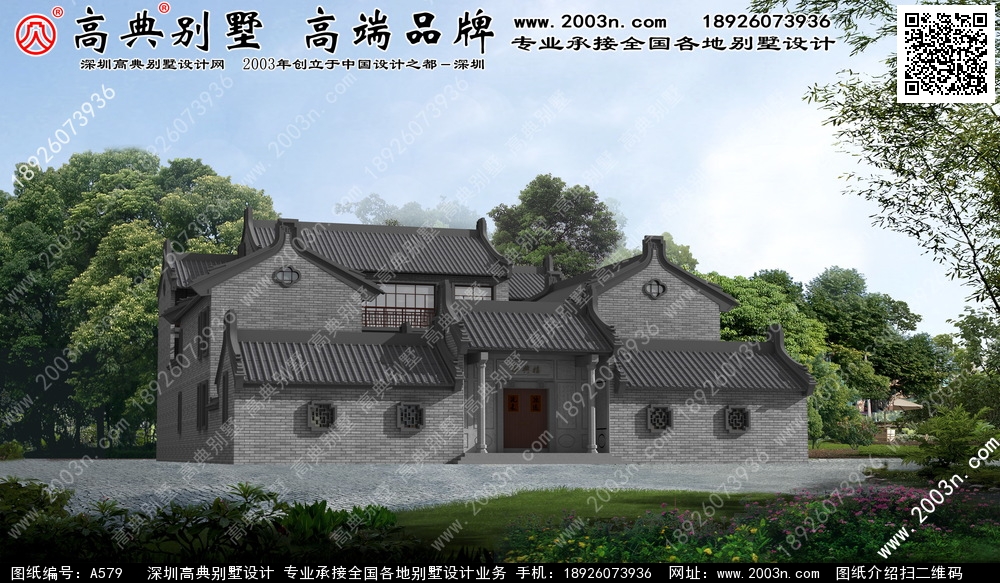 A579号别墅外墙主要材料:仿古小青瓦、青灰砖、真石漆 |