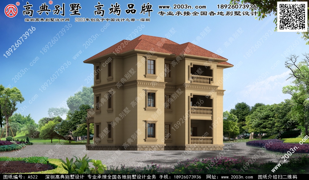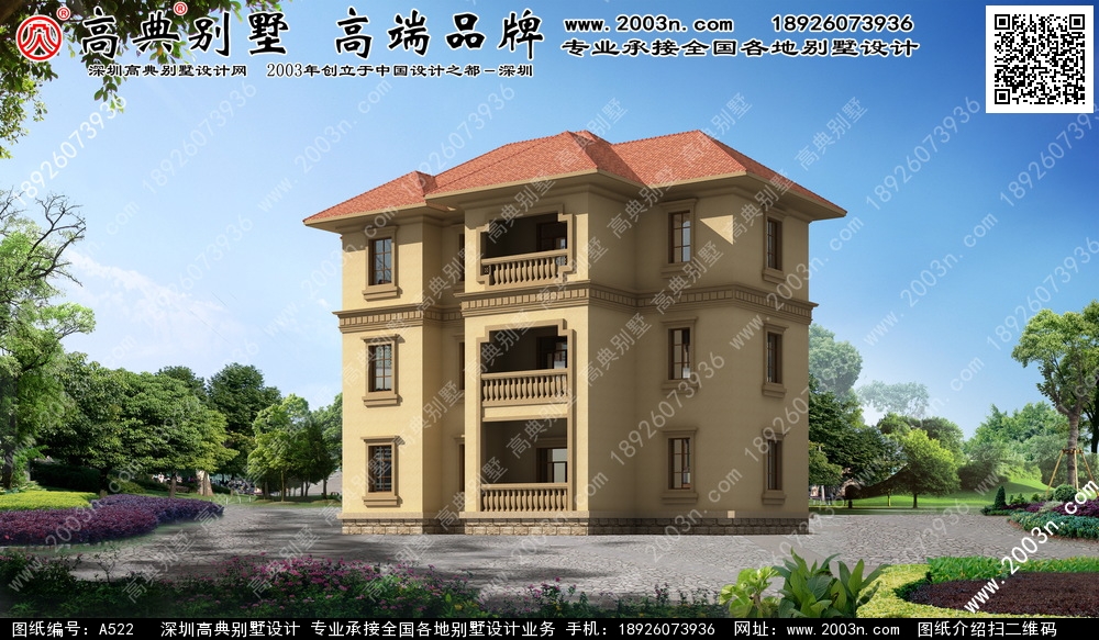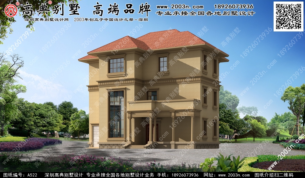 欧式三层别墅效果图大全首层185平方米图纸编号A522