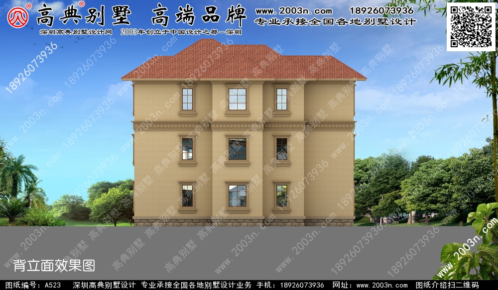 外墙真石漆、水泥构件墙面装饰线条、蘑菇面黄锈石、多色西班牙筒瓦 |