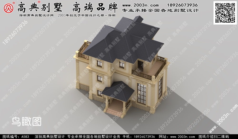 农村三层半楼房设计图首层128平方米图纸编号A583