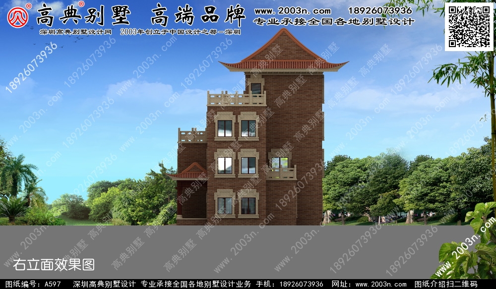 天然岩石漆、外墙劈开砖、黄金麻仿古石栏杆、石材构件线条、屋面中式琉璃瓦 |
