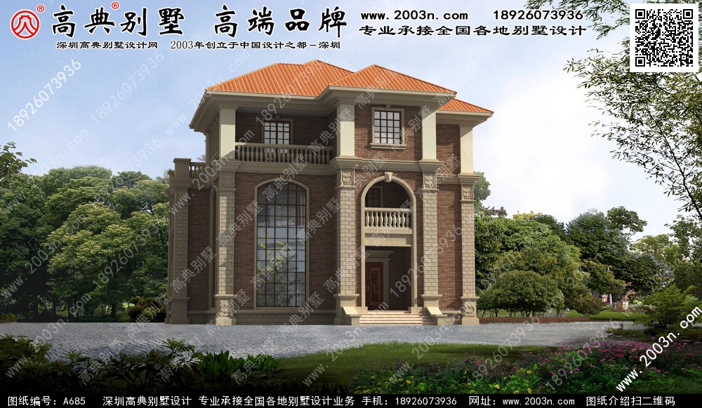 真石漆、花瓶柱式栏杆、水泥构件墙面装饰线条、外墙劈开砖、荔枝面黄锈石、屋面310X310S瓦 |