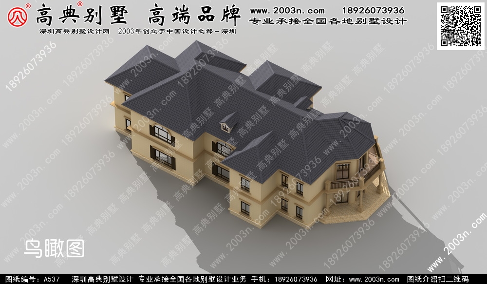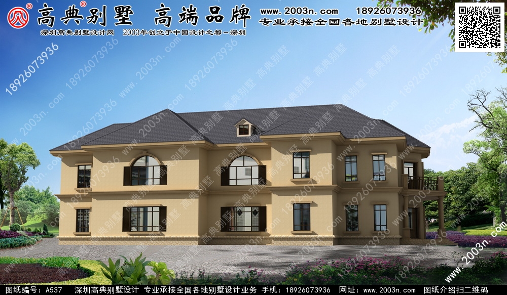 a537号别墅外墙主要材料:天然岩石漆、黄锈石、屋面水泥平板瓦 |