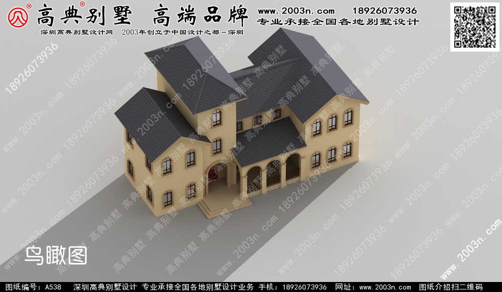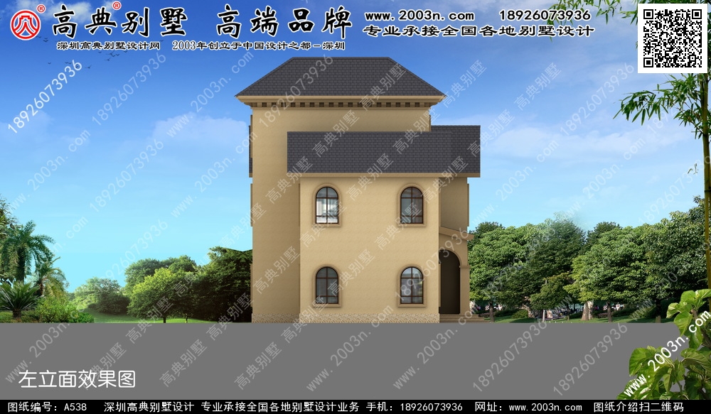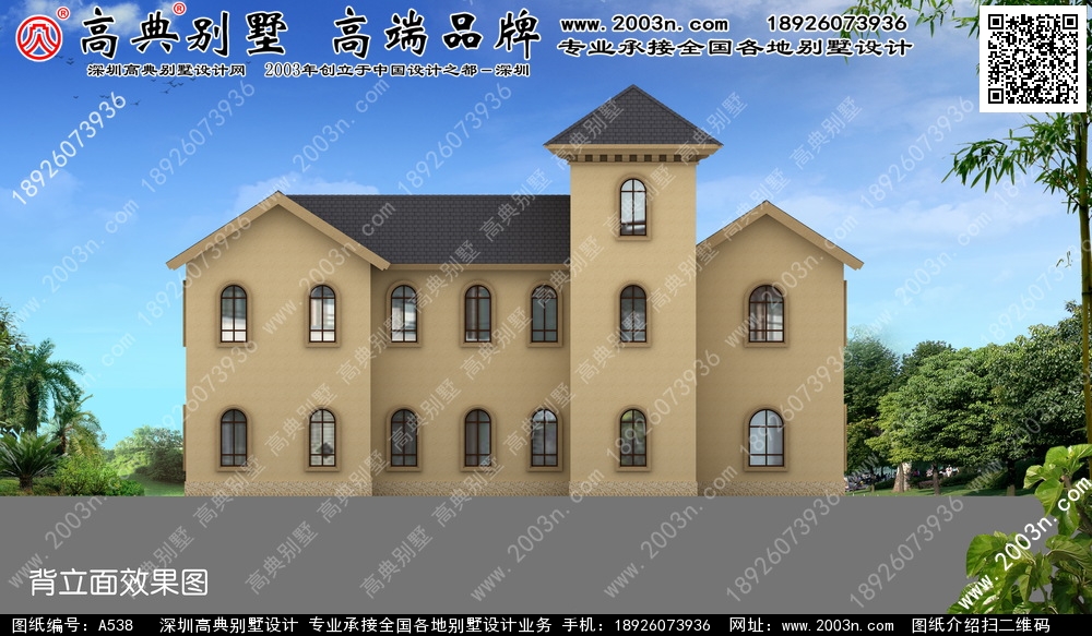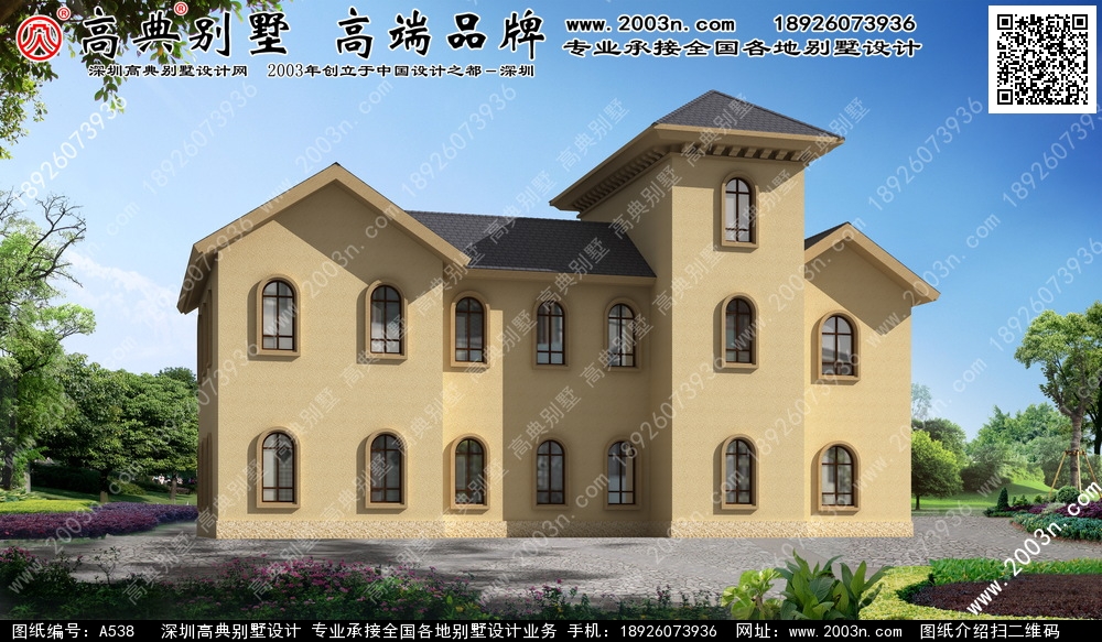 a538号别墅外墙主要材料:天然岩石漆、墙脚黄金麻花岗石、屋面水泥平板瓦 |