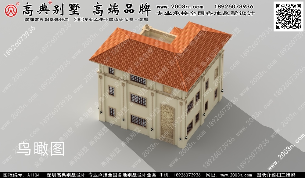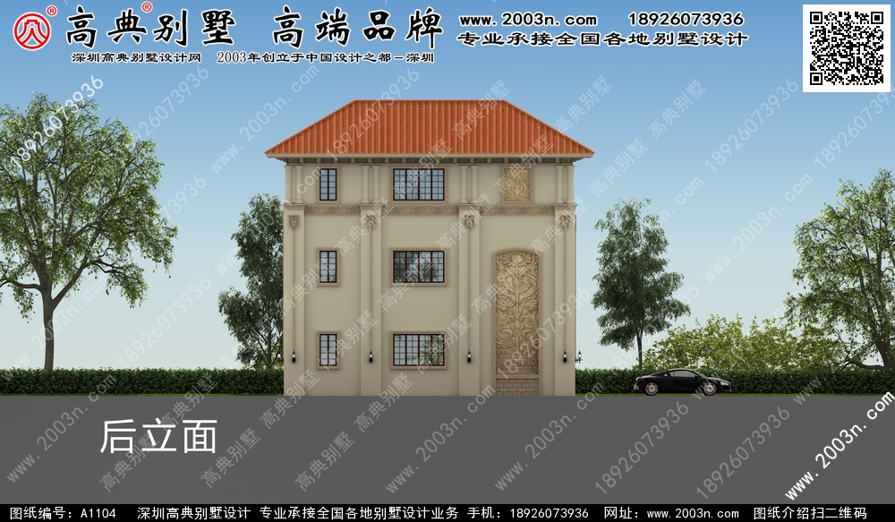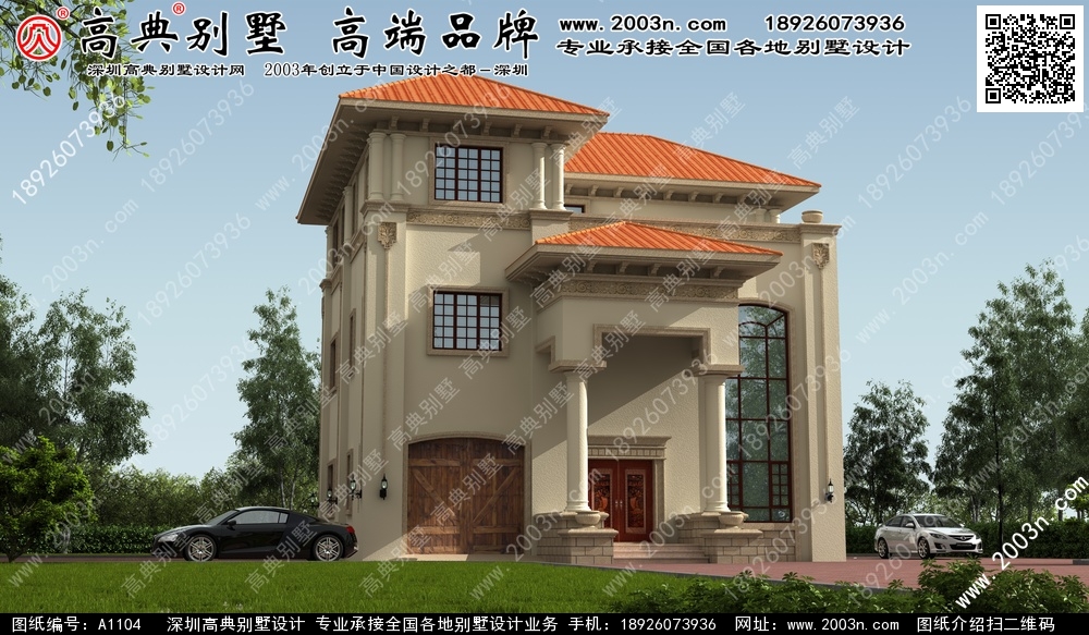 A1104号别墅外墙主要材料:真石漆、310X310S瓦、水泥构件、成品浮雕 |