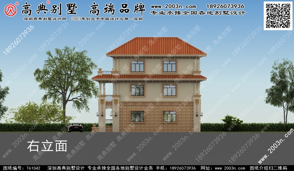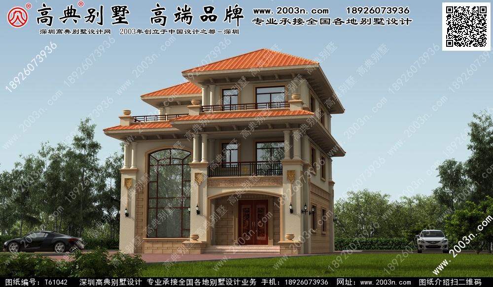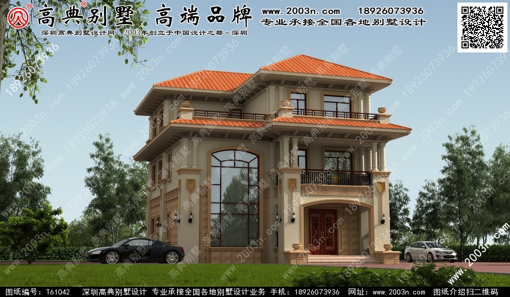 独栋别墅设计效果图首层140平方米图纸编号T61042
