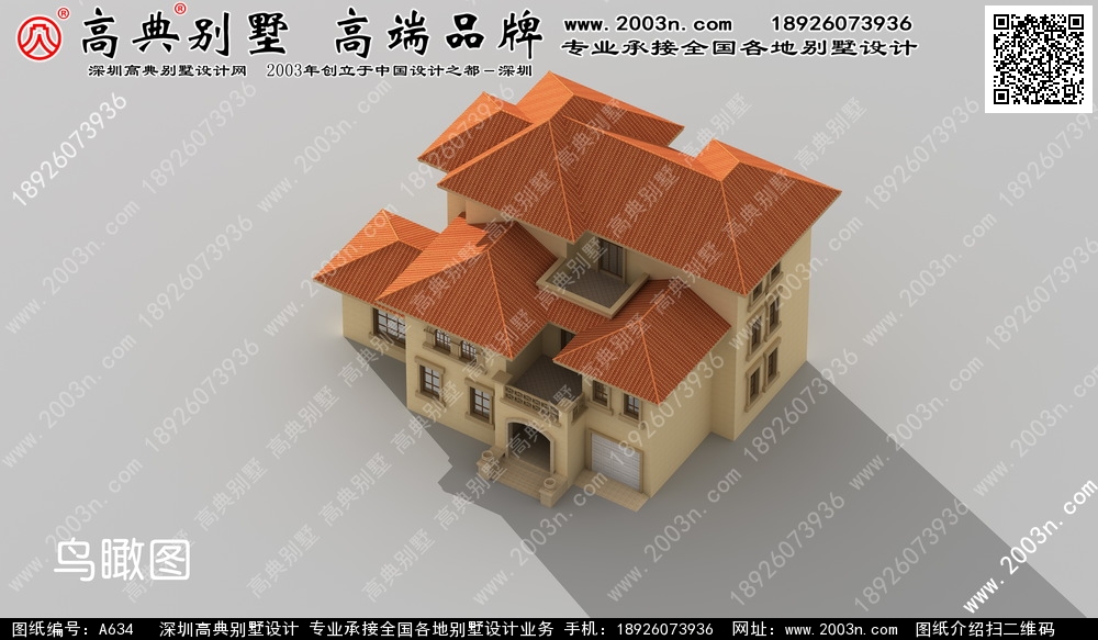 A634号别墅设计图纸及效果图介绍: