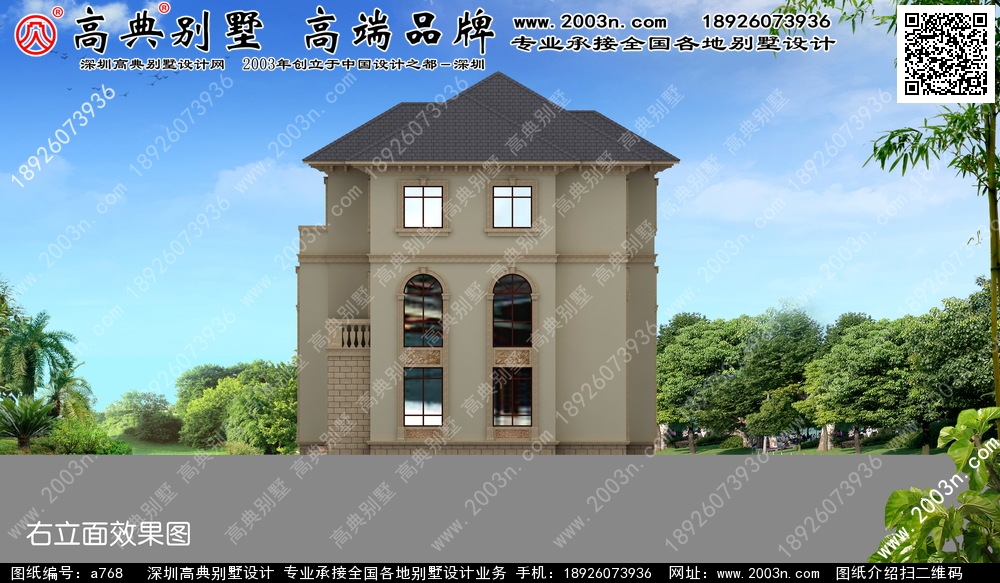 此别墅外墙主要材料:真石漆、水泥平板瓦、水泥构件、葫芦柱栏杆、荔枝面黄锈石 |