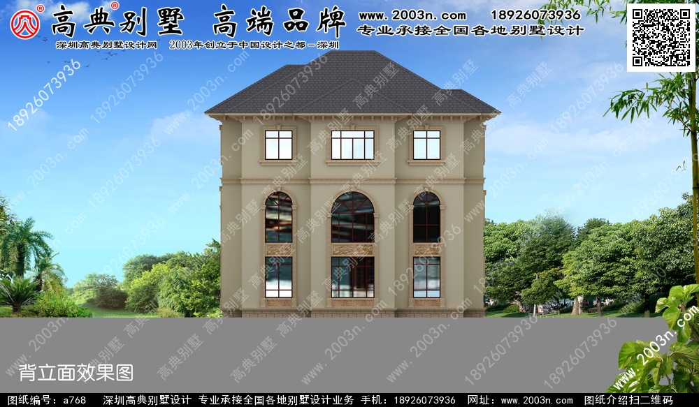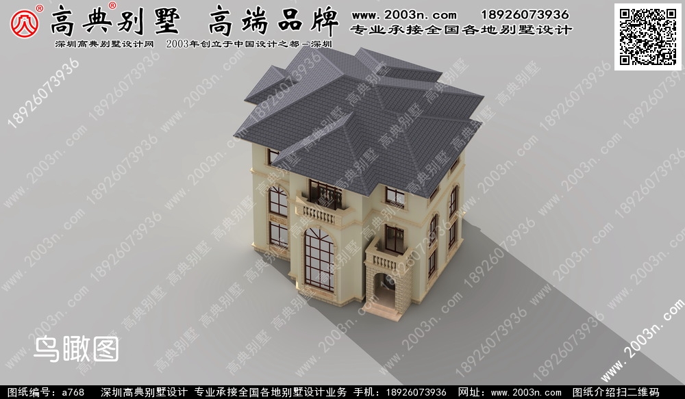 超豪华欧式别墅外观首层130平方米图纸编号A768