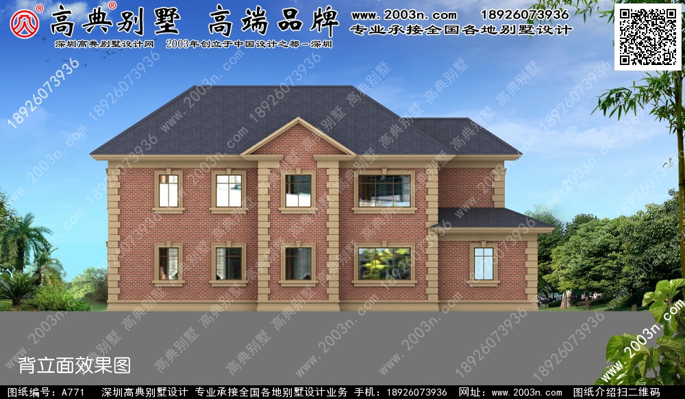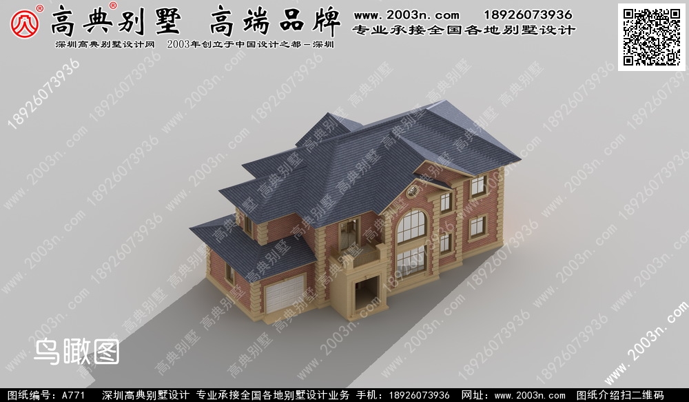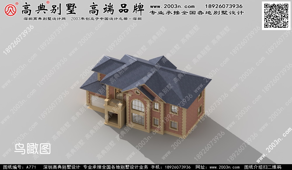 乡村好看别墅外观效果图首层258平方米图纸编号A771