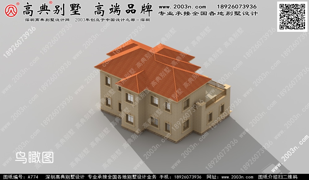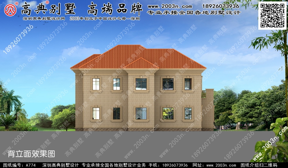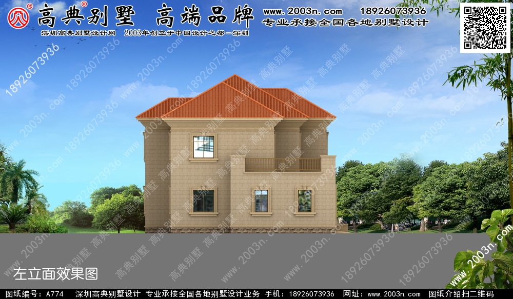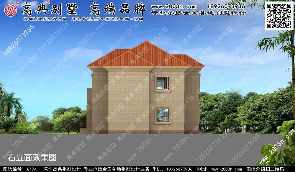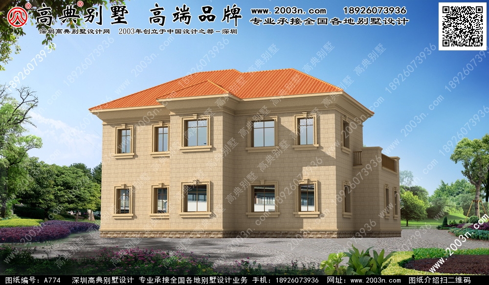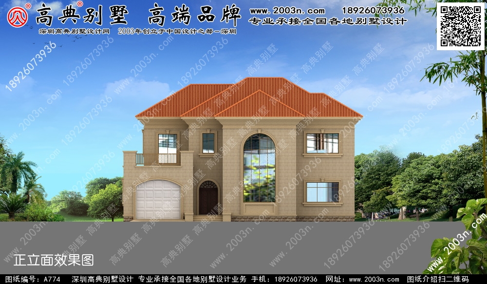 欧式二层别墅外观图首层161平方米图纸编号A774