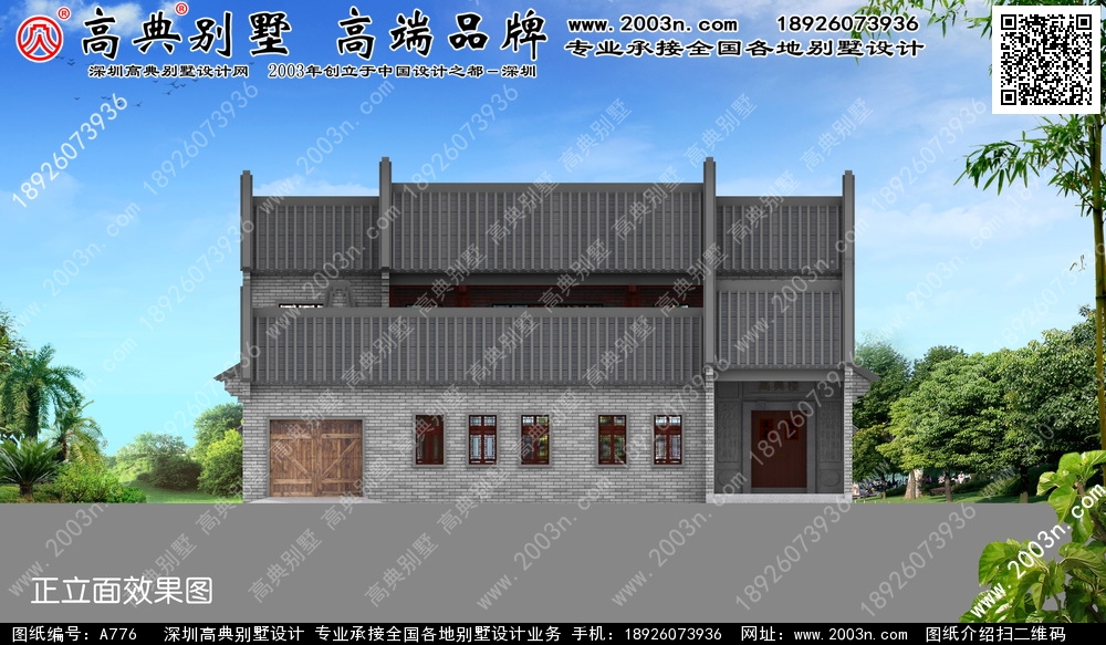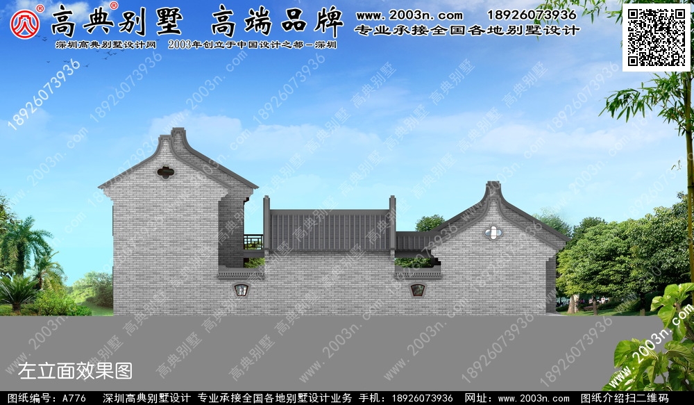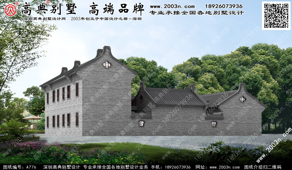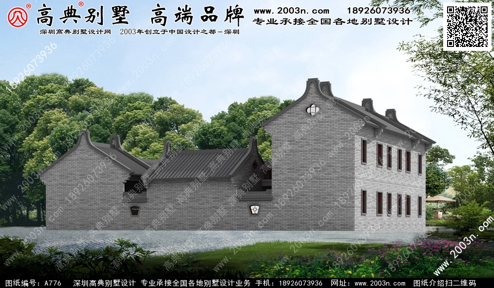 此别墅外墙主要材料:屋面仿古小青瓦、青灰砖、真石漆 |
