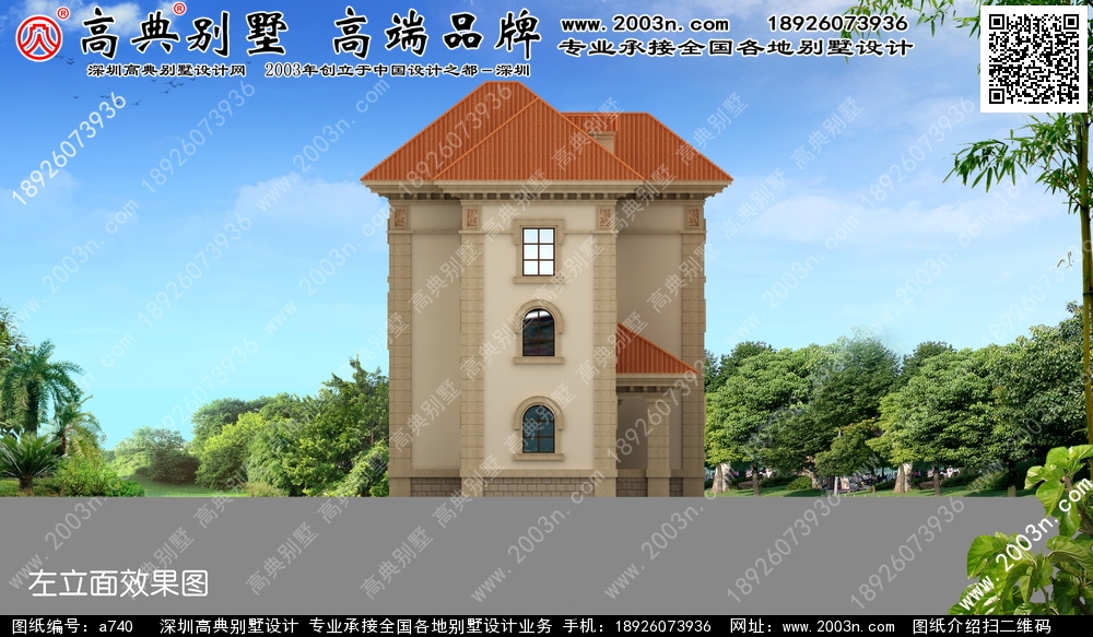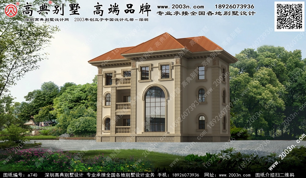 此别墅外墙主要材料:天然岩石漆、水泥构件葫芦柱栏杆、荔枝面黄锈石、欧式构件线条、屋面310X310S瓦 |