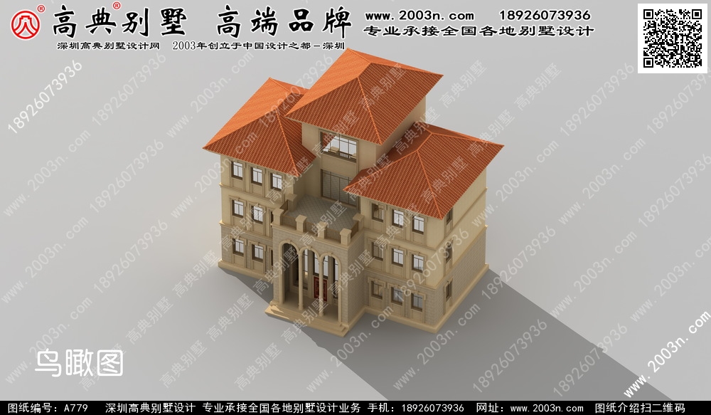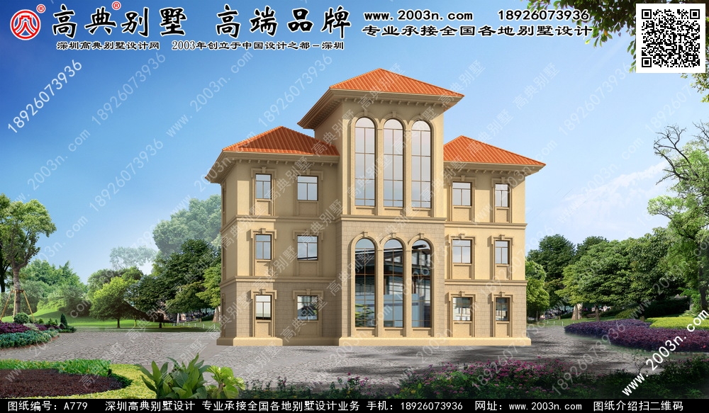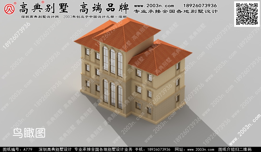 乡村别墅外观效果图首层157平方米图纸编号A779