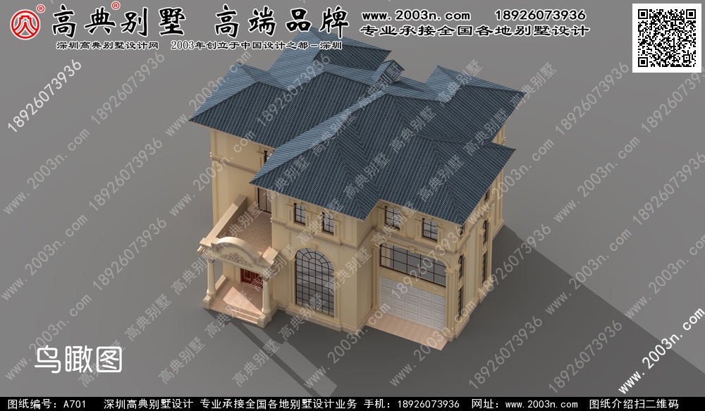 农村欧式三层别墅图片首层226平方米图纸编号A701