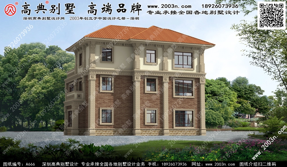 此别墅外墙主要材料:天然岩石漆、蘑菇面黄锈石、外墙劈开砖、水泥装饰构件线条、屋面310X310S瓦 |