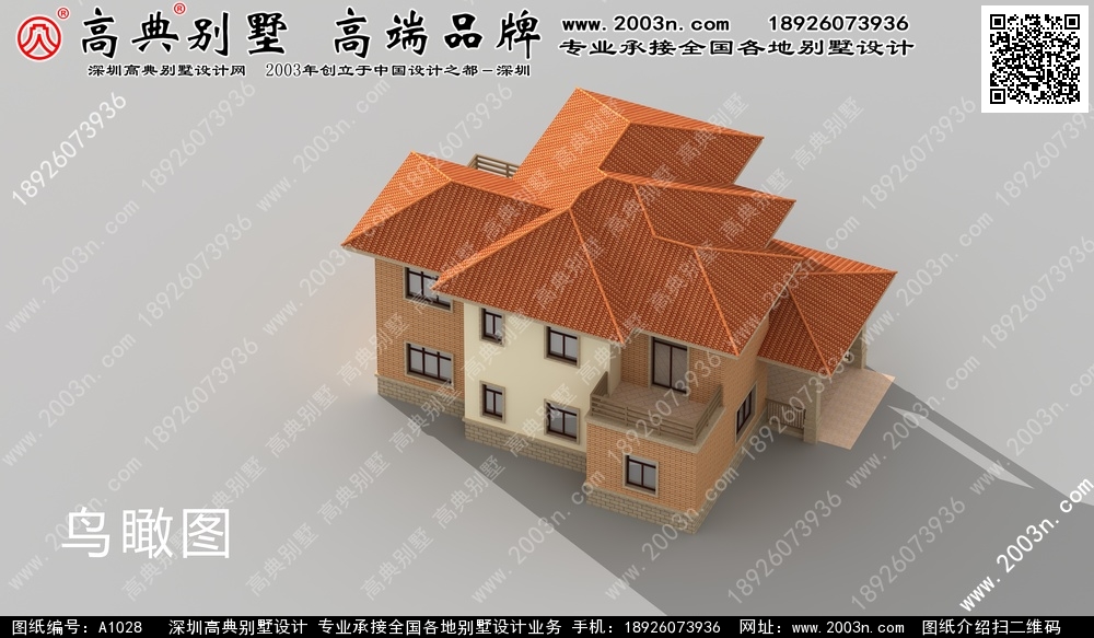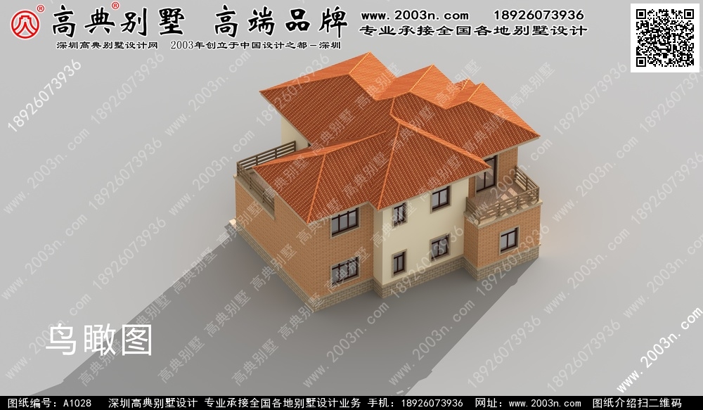 A1028号别墅外墙主要材料:外墙真石漆、屋面310X310S瓦、铁艺栏杆、墙脚黄锈石、外墙劈开砖 |