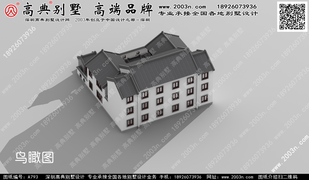 a793号别墅外墙主要材料:外墙面贴仿古青砖100X380、天然岩石漆、中式石材构件线条、屋面小青瓦 |
