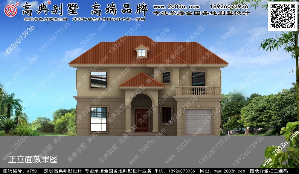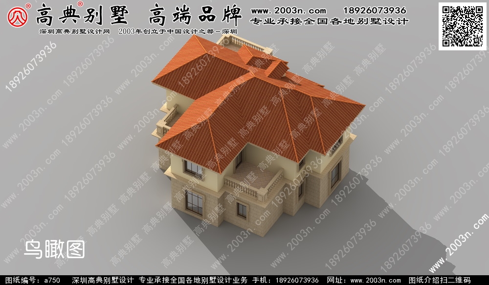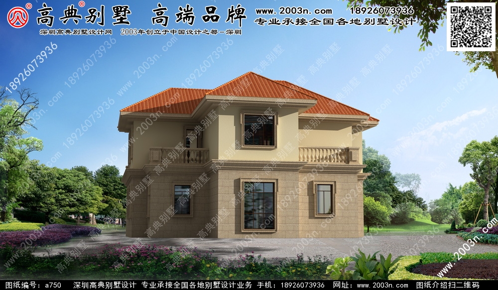 二层别墅图纸效果图首层181平方米图纸编号A750