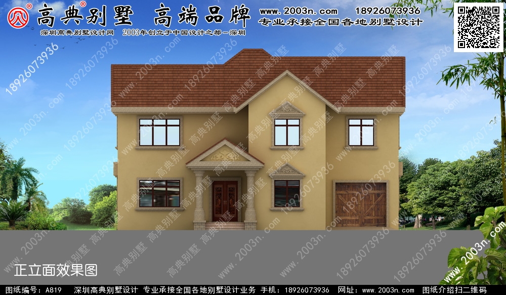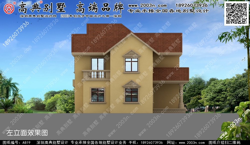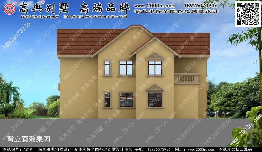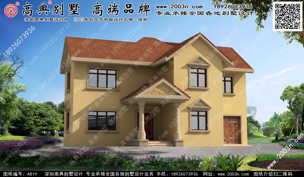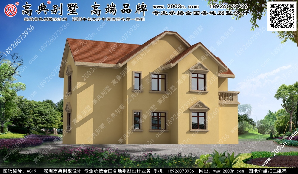 a819号别墅外墙主要材料:天然岩石漆、屋面水泥平板瓦 |