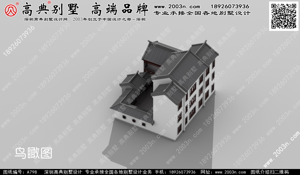 a798号别墅外墙主要材料:屋面仿古小青瓦、青灰砖、真石漆 |