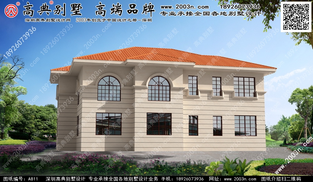 农村豪华别墅效果图首层200平方米图纸编号A811