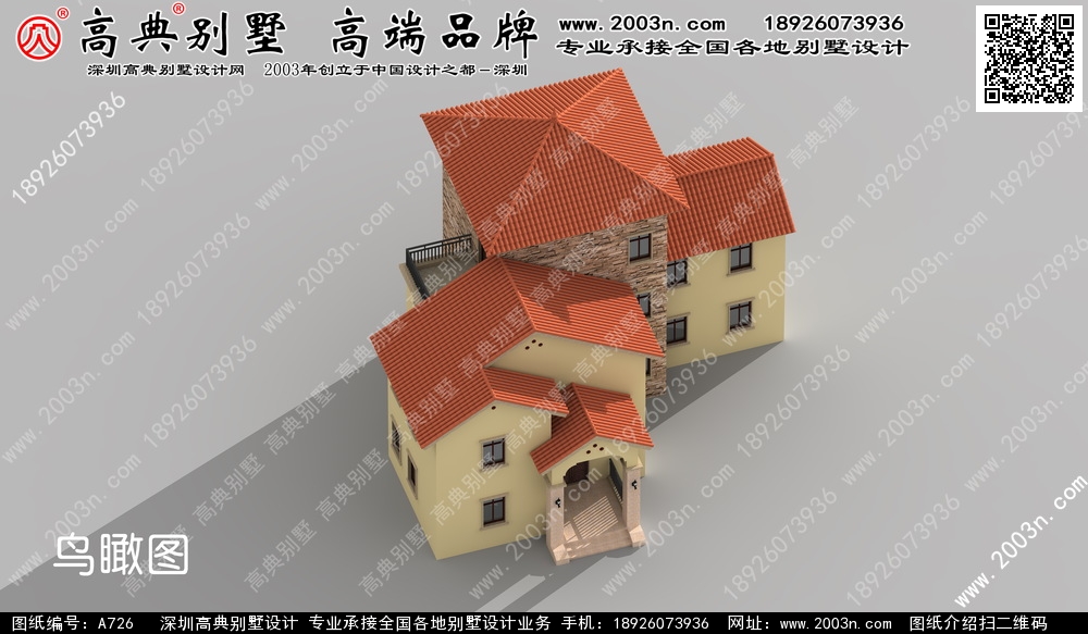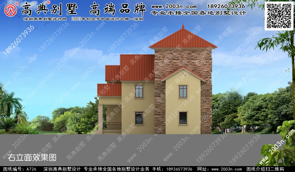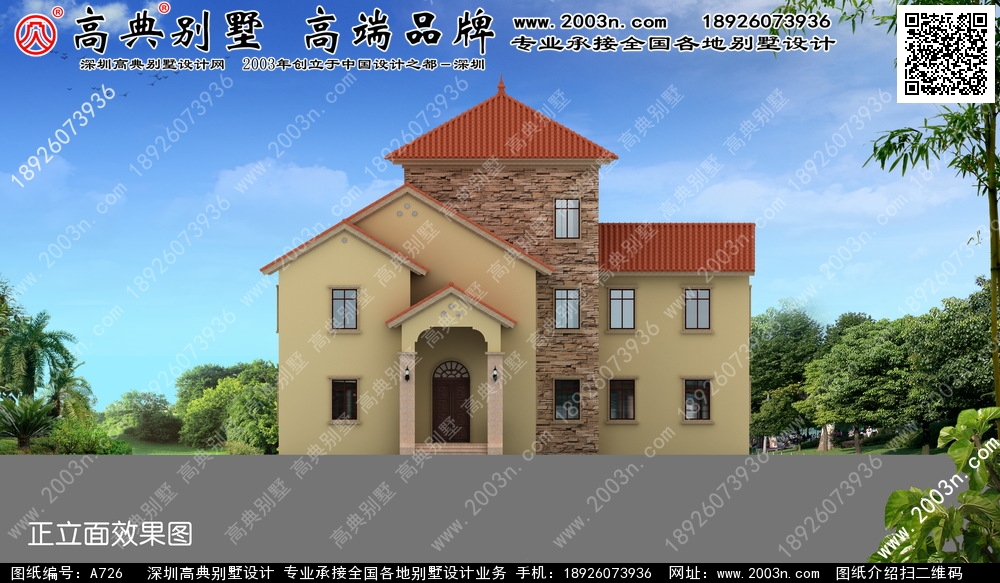 外墙天然岩石漆、荔枝面黄锈石门柱、屋面西班牙瓦 |