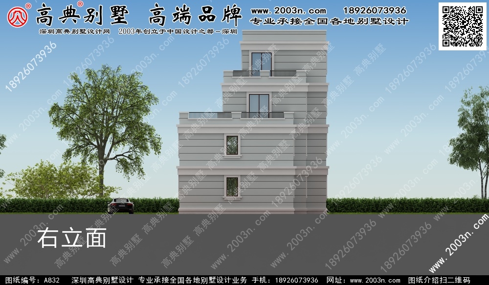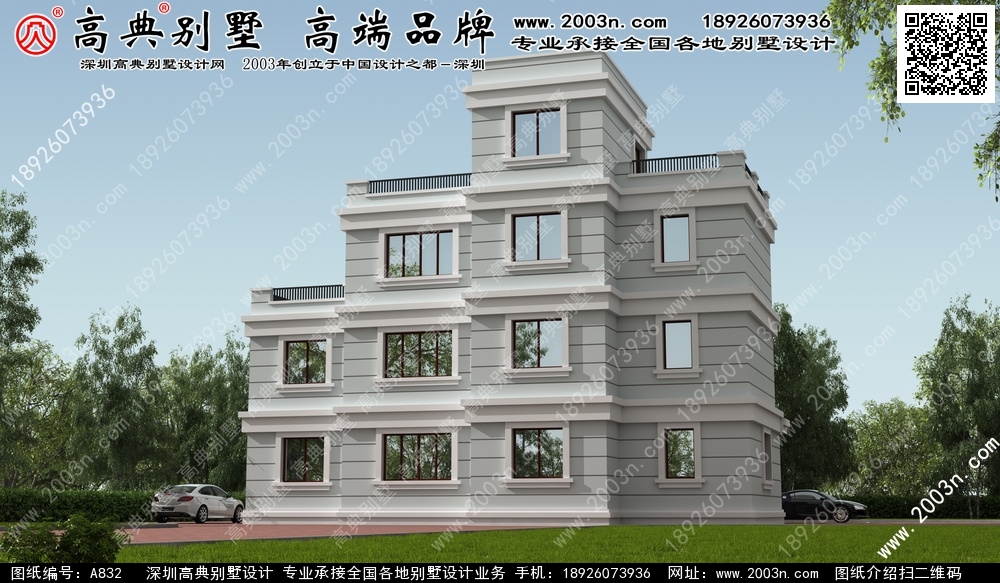 小型度假别墅外观效果图首层148平方米图纸编号A832