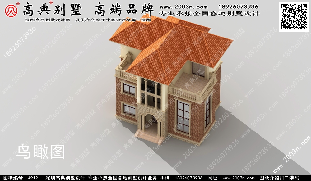 此别墅外墙主要材料:火烧面黄锈石墙脚、劈开砖、真石漆、310X310S瓦 |