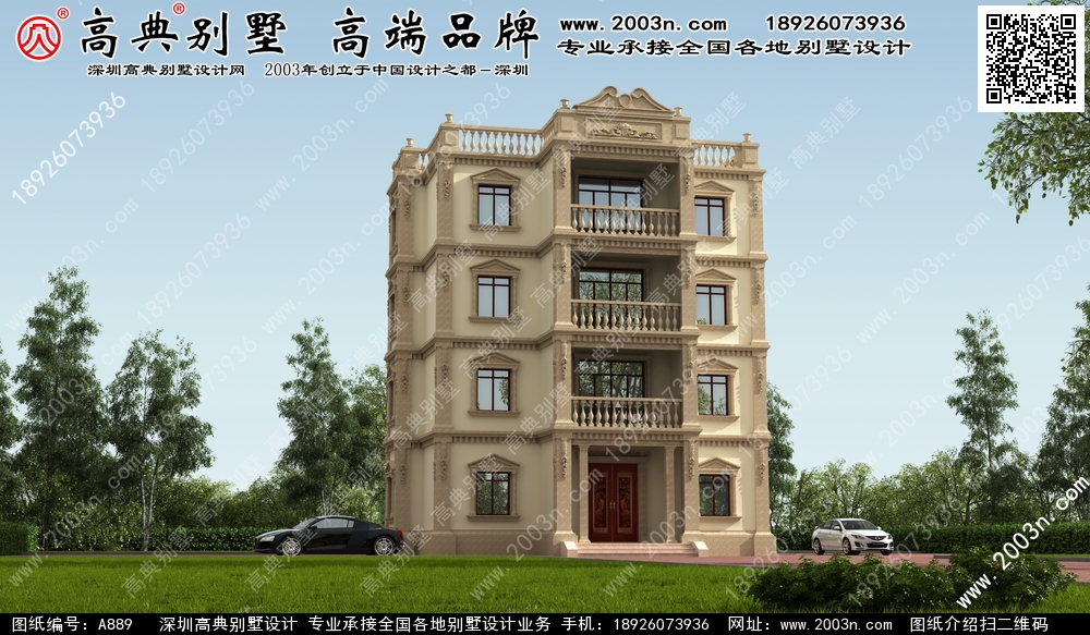 此别墅外墙主要材料:欧式水泥构件线条浮雕造型、真石漆 |
