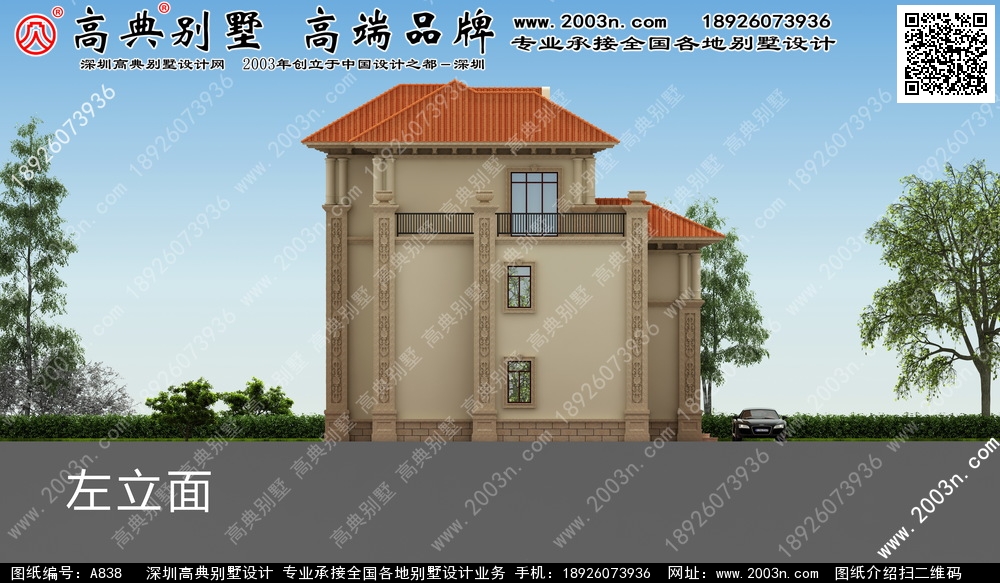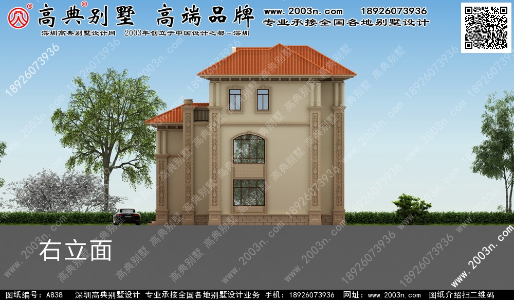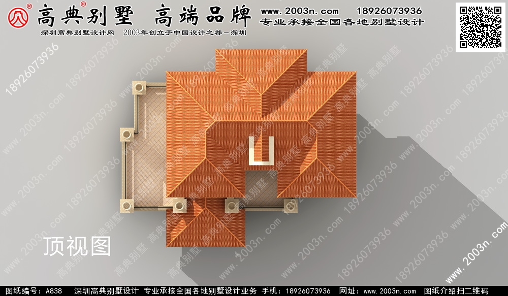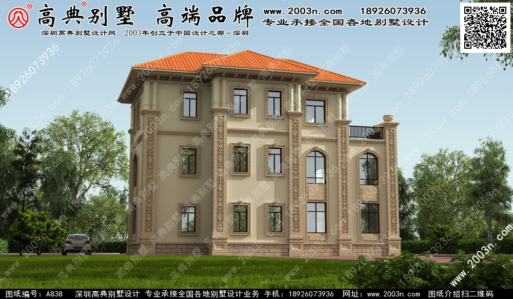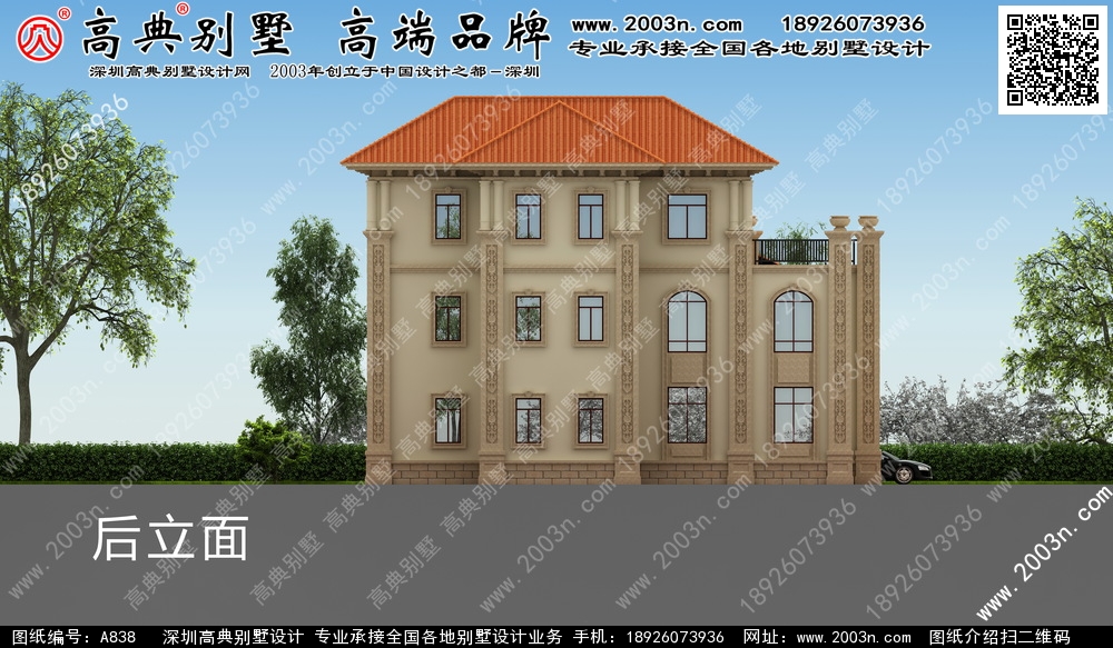 三层带堂屋别墅设计图首层184平方米图纸编号A838