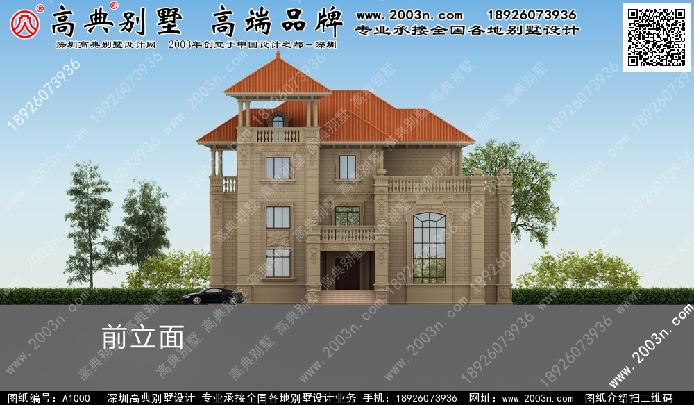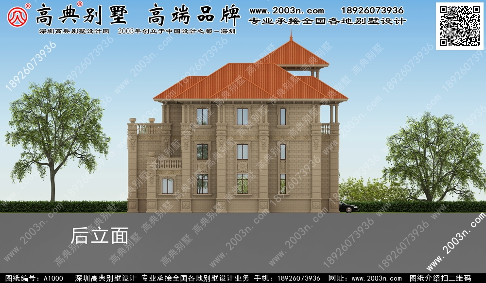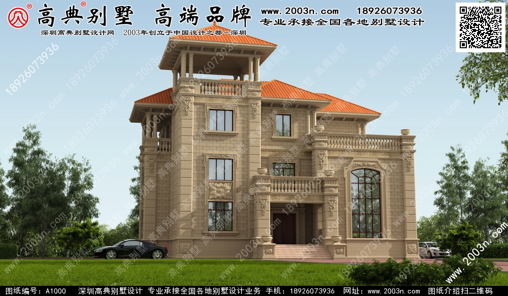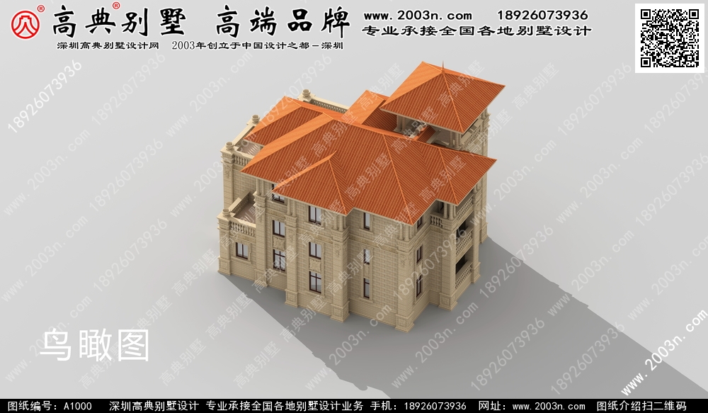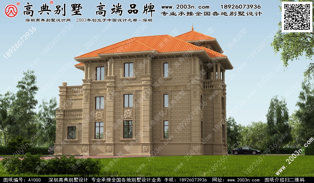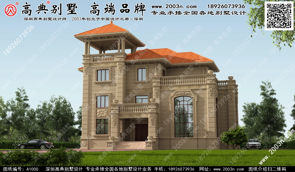 三层欧式豪华别墅外观首层301平方米图纸编号a1000