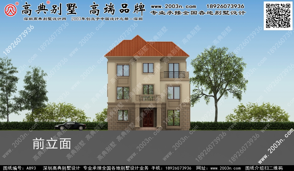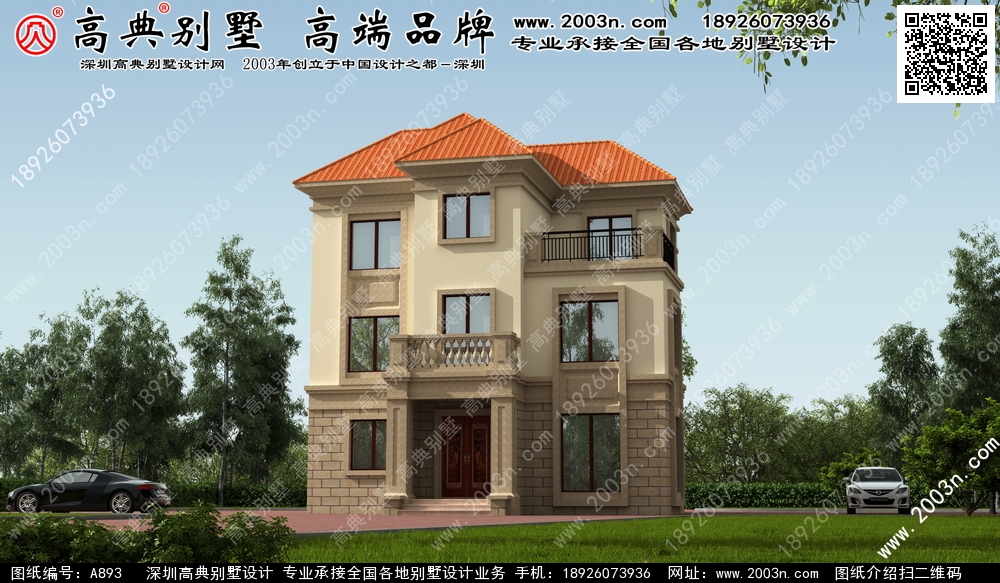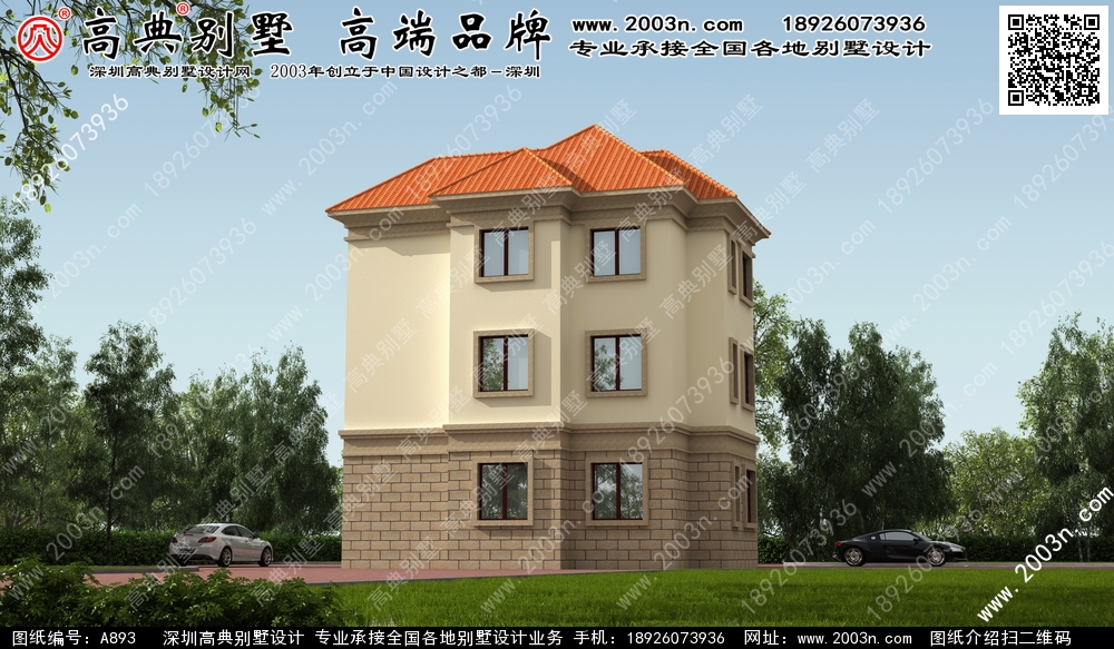 欧式三层别墅效果图首层91平方米图纸编号a893号