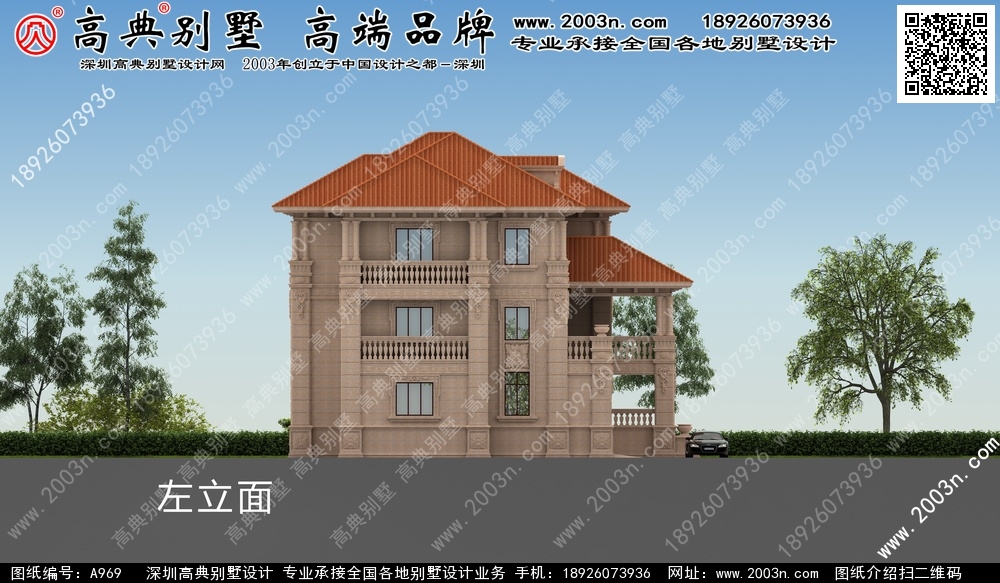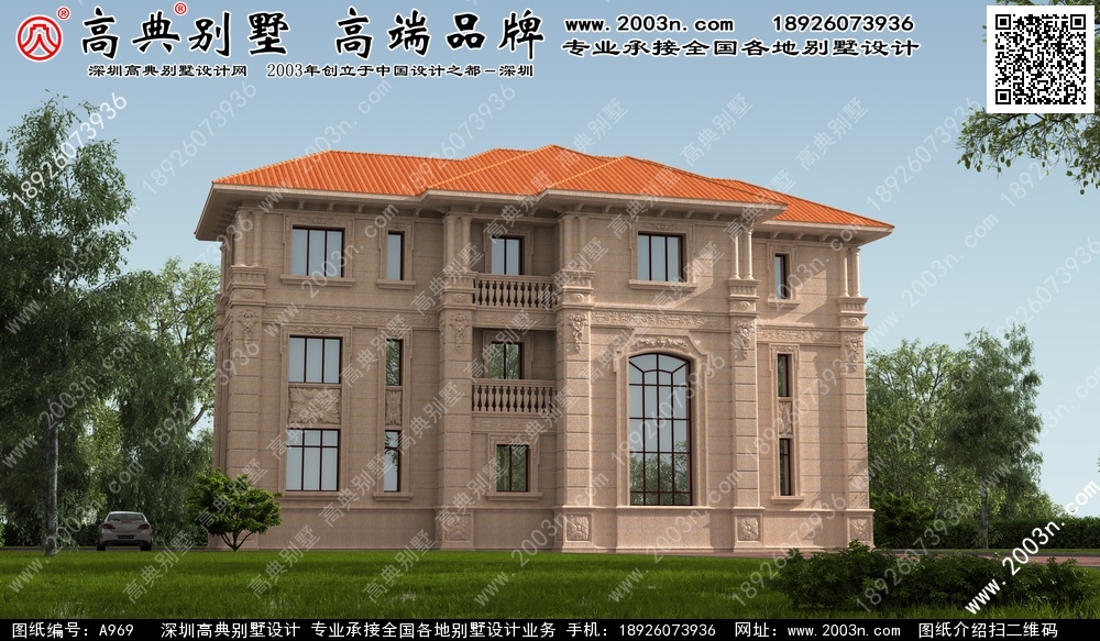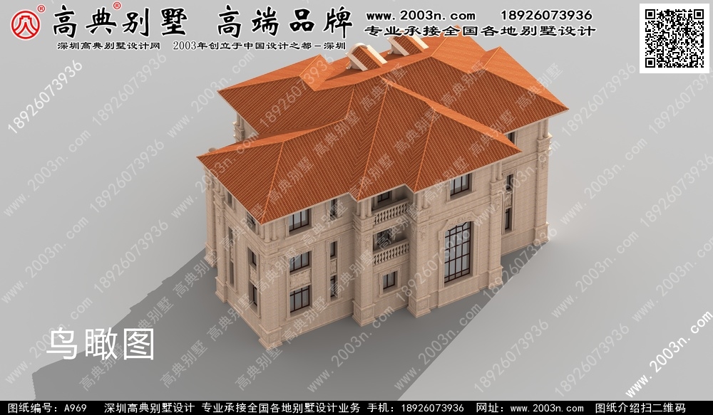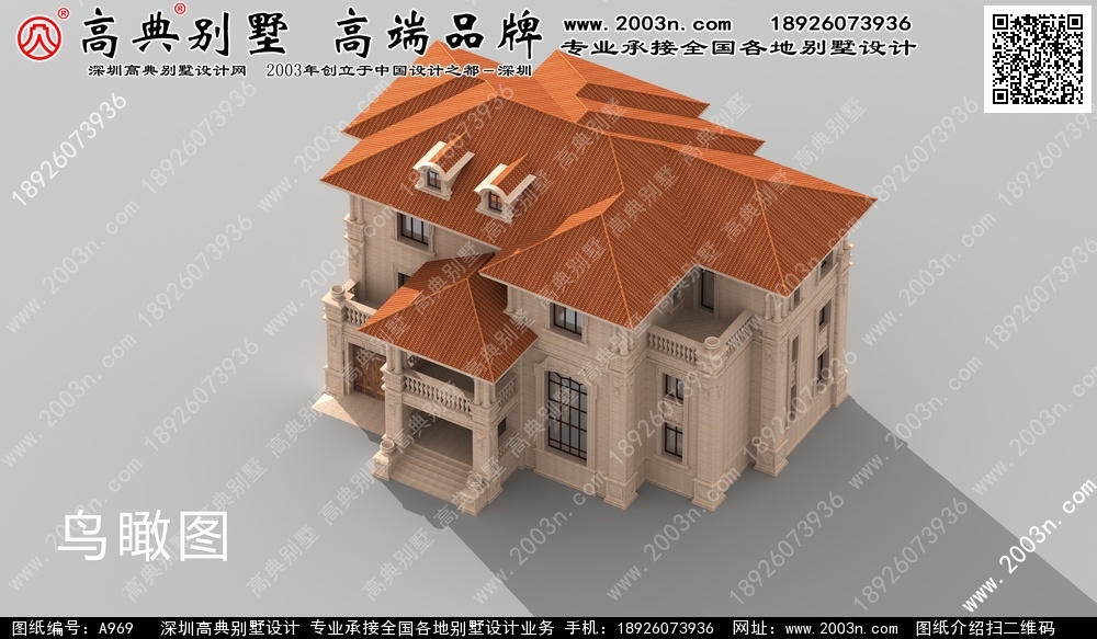 经典欧式两层半农村小别墅首层275平方米图纸编号a969
