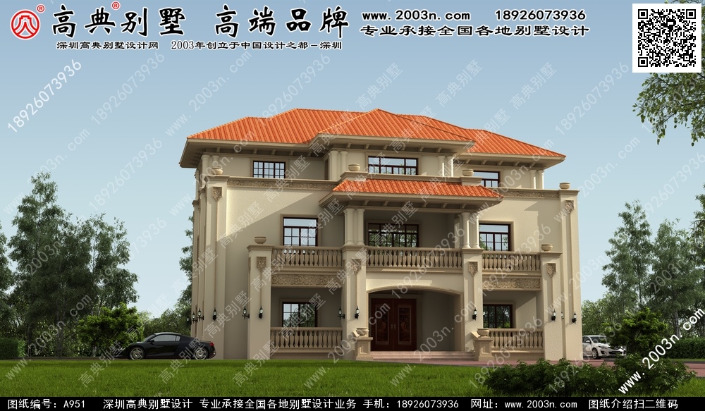 欧式别墅效果图设计说明首层280平方米图纸编号a951