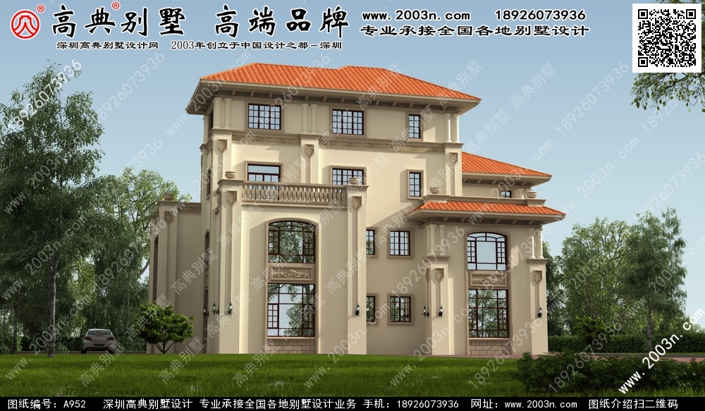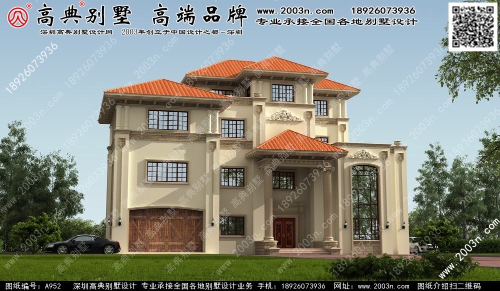 此别墅外墙主要材料:黄锈石、真石漆、S瓦 |