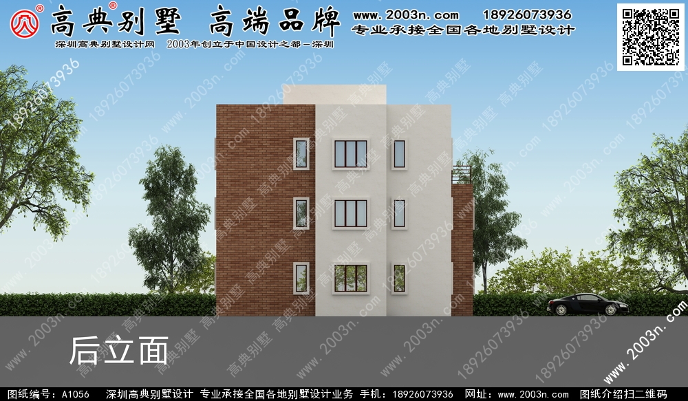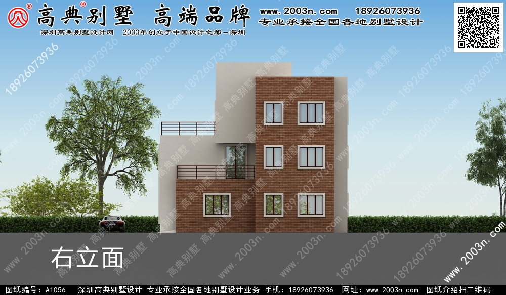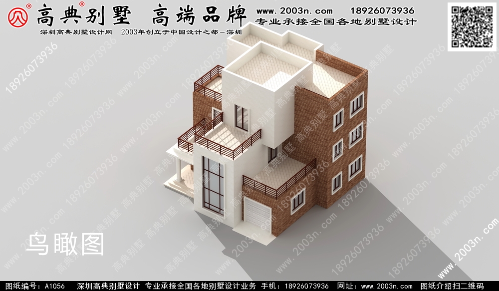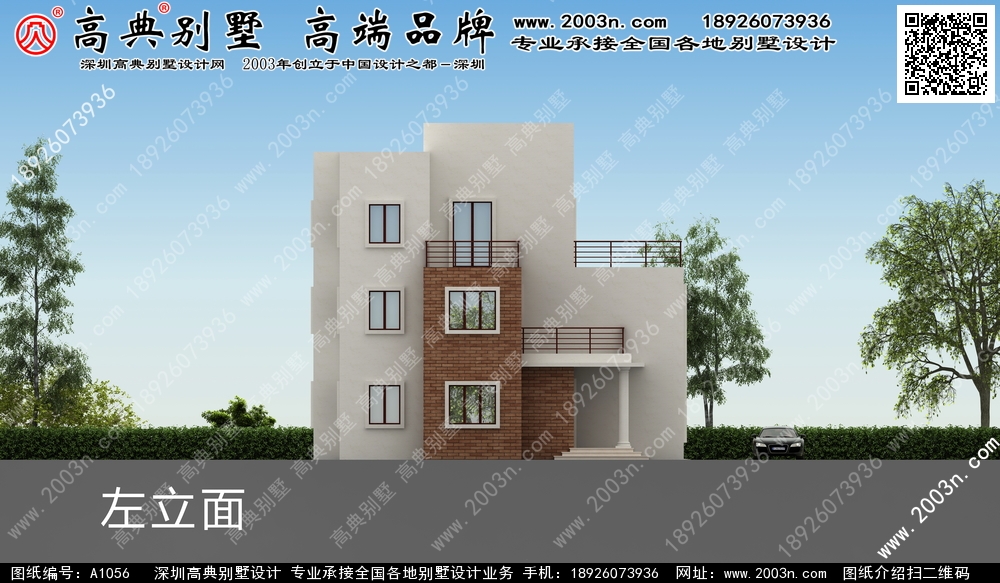 a1056号别墅外墙主要材料:天然岩石漆、外墙砖、铁艺样杆