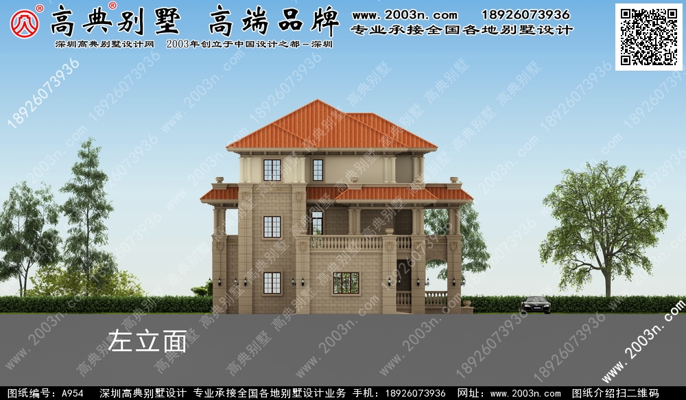 此别墅外墙主要材料:黄锈石、真石漆、S瓦 |