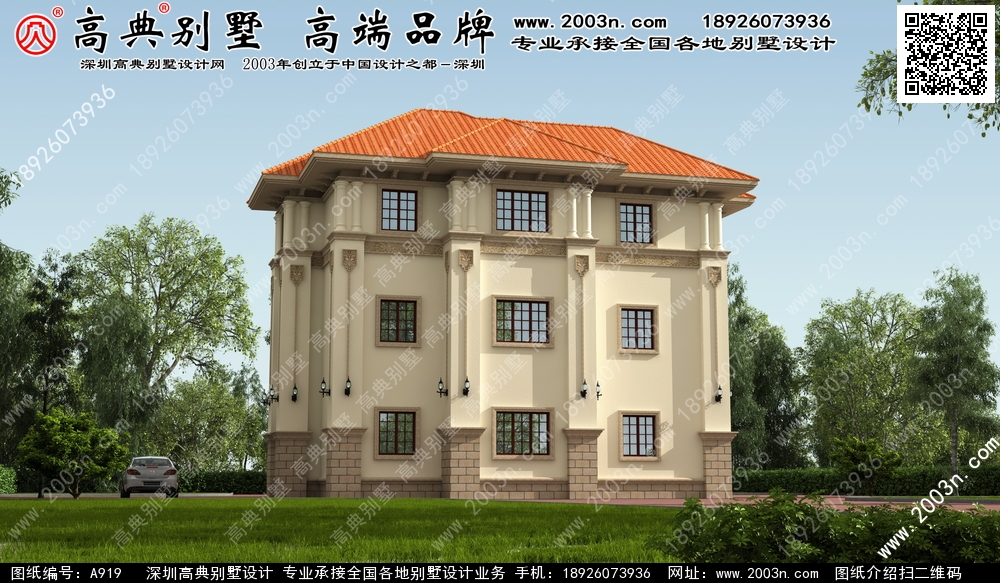 A919号别墅设计图纸及效果图介绍: