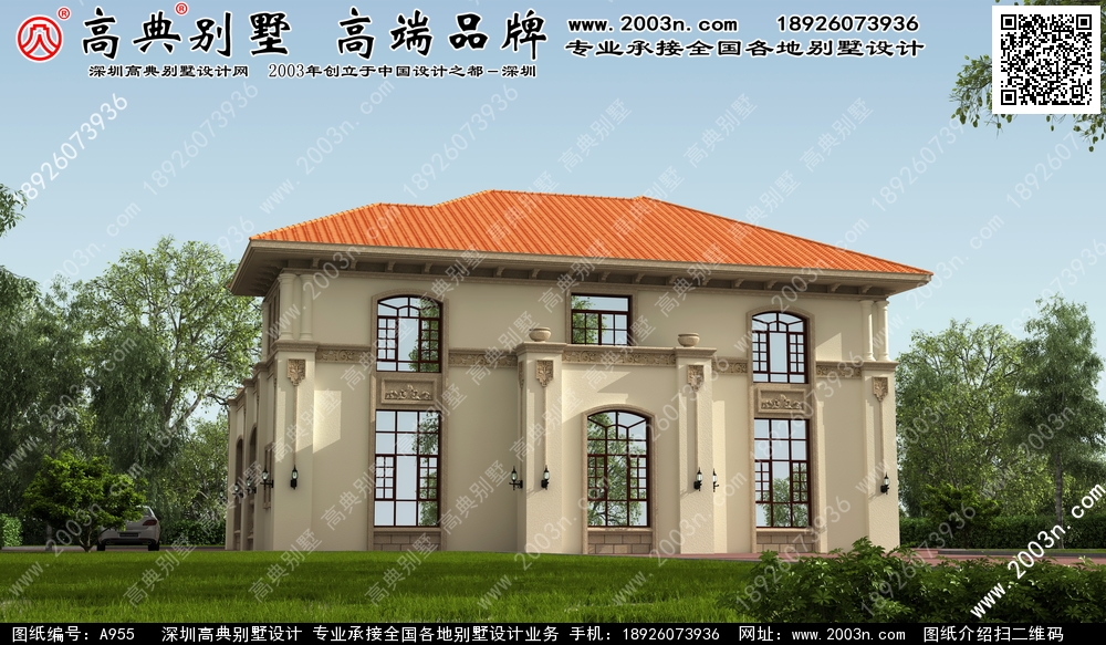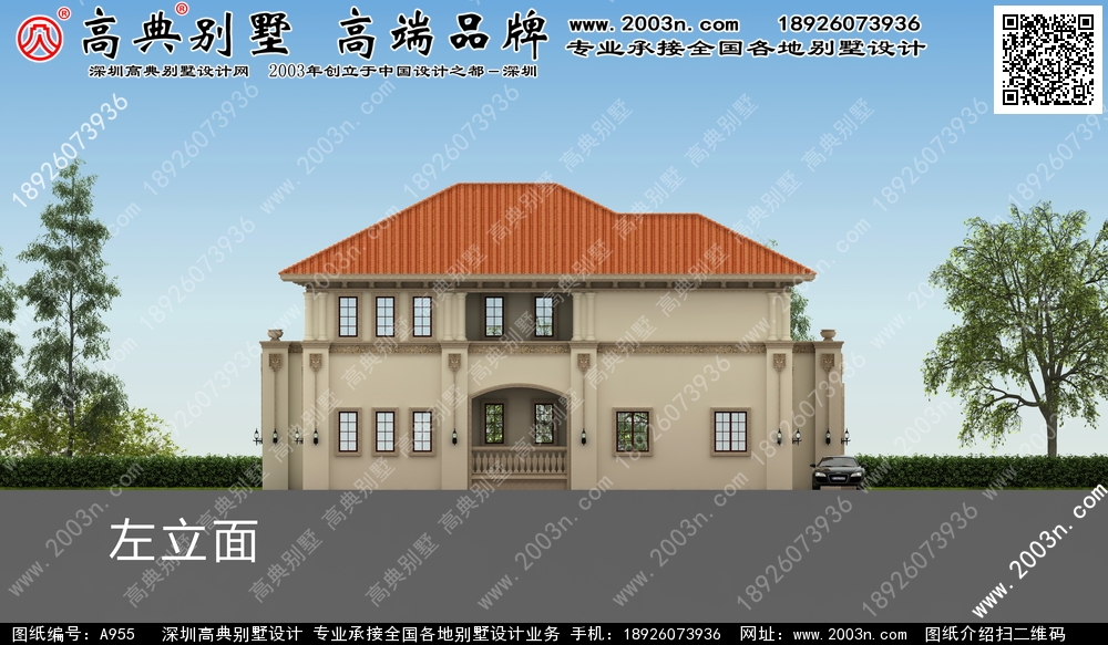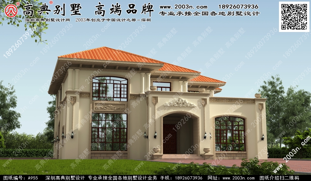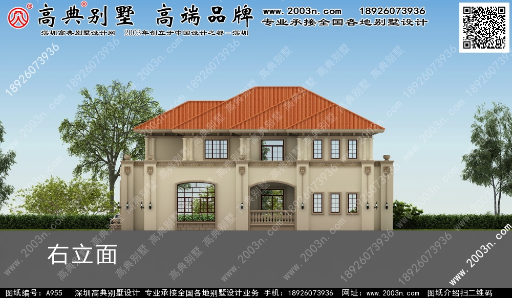 此别墅外墙主要材料:黄锈石、真石漆、S瓦 |