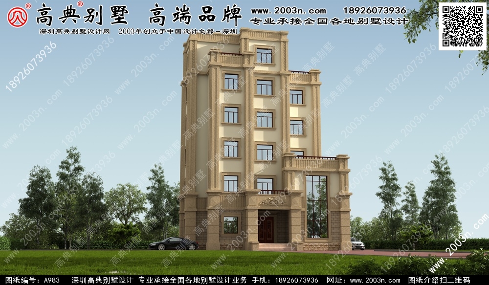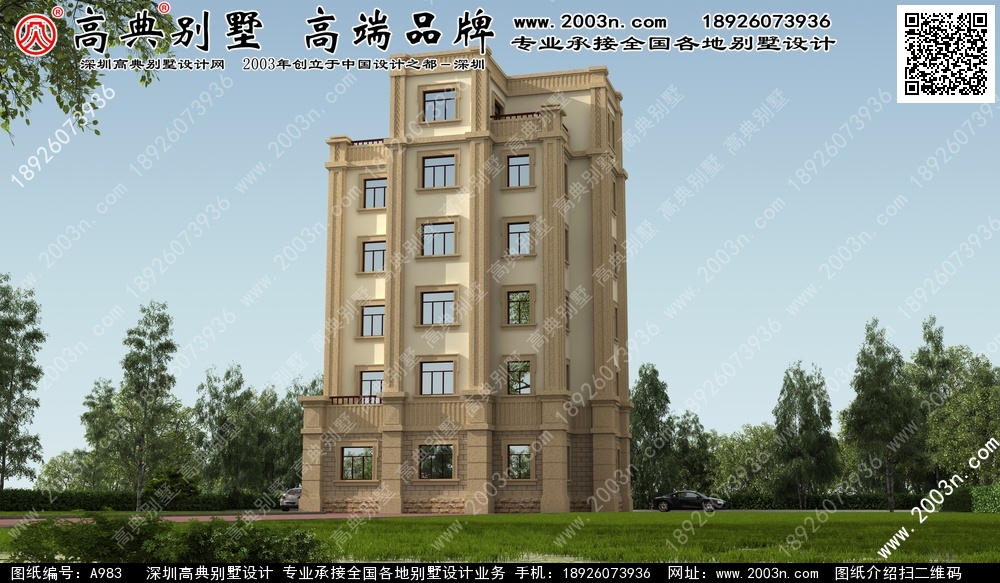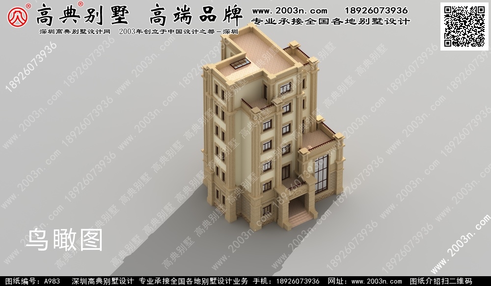 欧式六层别墅效果图首层183平方米图纸编号a983