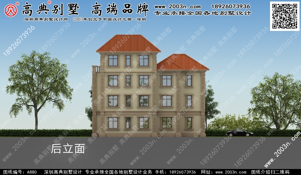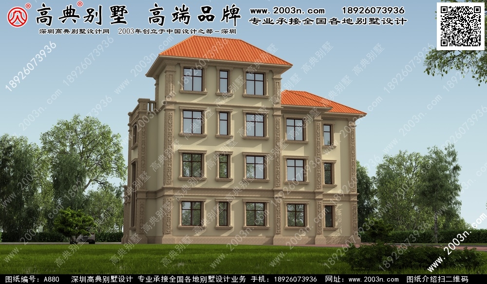 此别墅外墙主要材料:欧式水泥构件线条浮雕造型、真石漆、310X310S瓦 |
