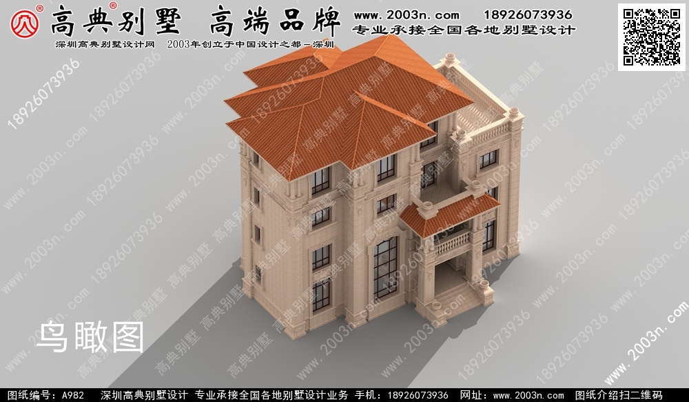 欧式四层小别墅效果图首层190平方米图纸编号a982