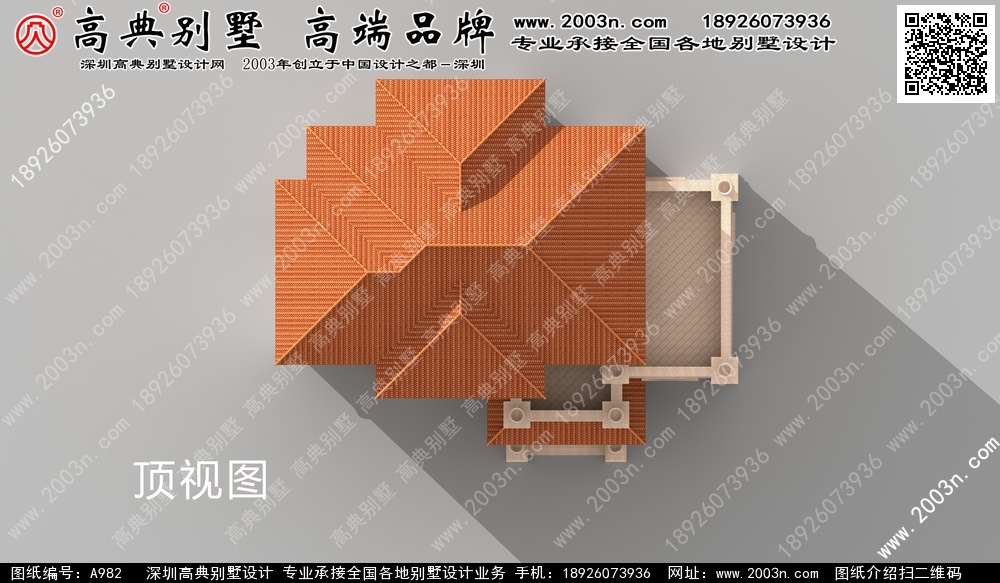 此别墅外墙主要材料:荔枝面永定红纯石材干挂、屋面310X310S瓦 |