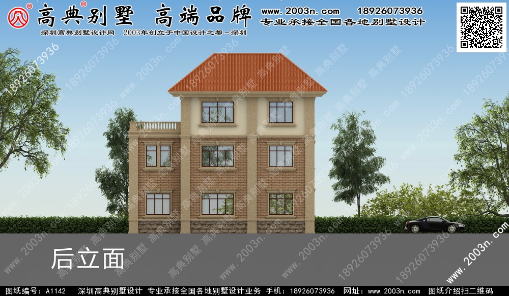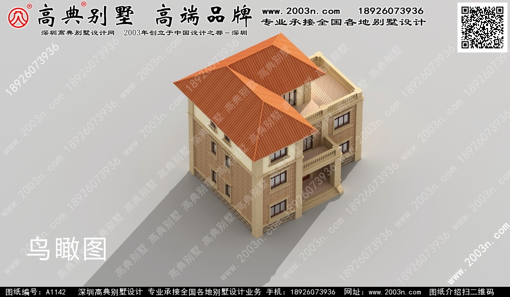 A1142号别墅外墙主要材料:水泥构件、外墙砖、蘑菇面黄锈石、真石漆、310X310S瓦 |